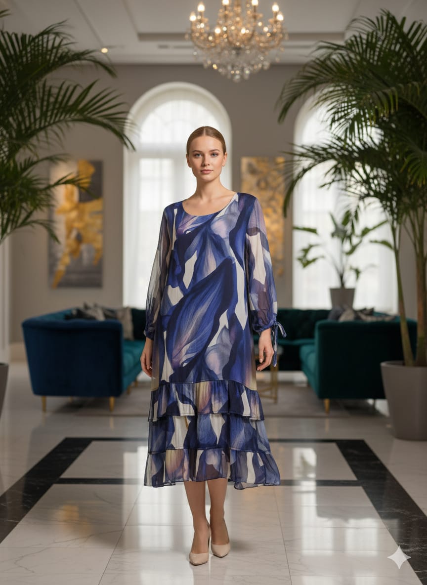 vestido  seda italiana estampado manga larga talla única aprox 12-14